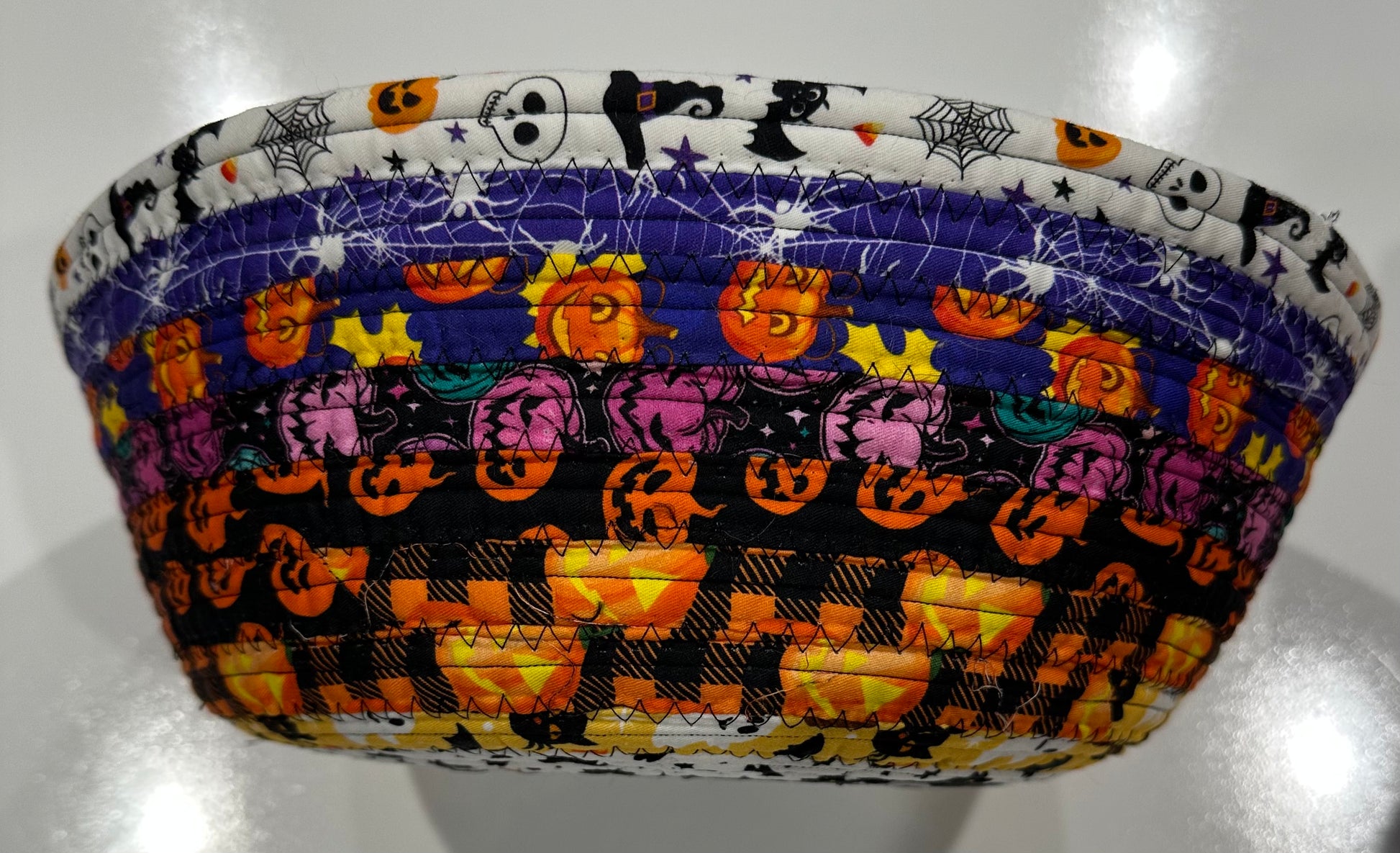 Add a touch of Halloween fun to your home with this one-of-a-kind fabric rope basket! Handcrafted with love and care, this sturdy storage bin is perfect for holding candy, small toys, craft supplies, or seasonal decor. Featuring vibrant Halloween prints—pumpkins, black cats, spiderwebs, and more—each basket is unique and bursting with spooky charm.