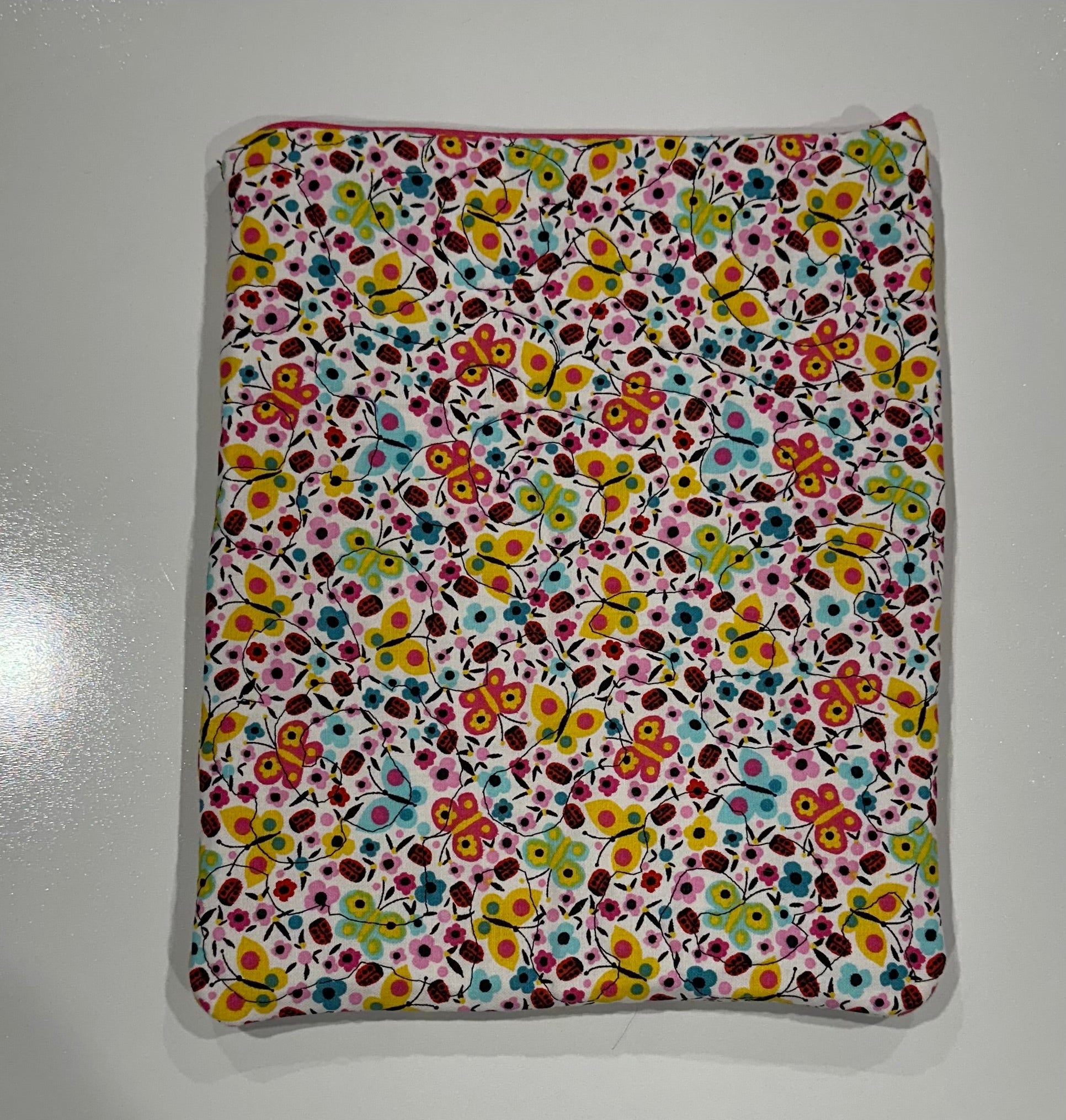 Extra small Quilted Zipper Pouch – 10”x8.5” – Butterfly & Ladybug Print – Custom Name Embroidery OptionQuilted Zipper Pouch – 10”x8.5” – Butterfly Ladyb